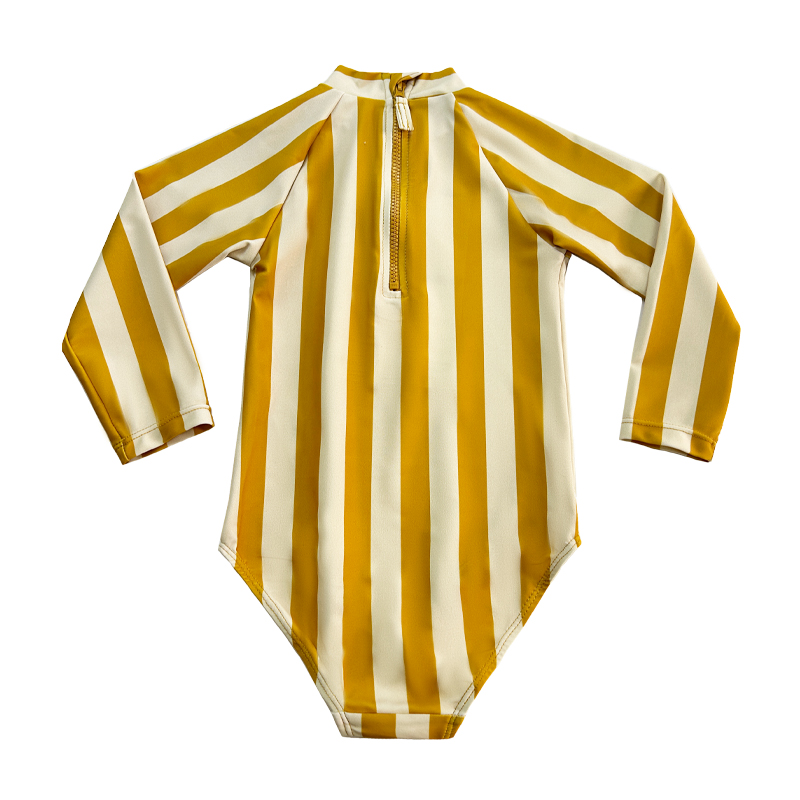 *ein-piece gestreiftes Reißverschlussgelb -Aprikosen -Streifenmuster, geeignet für kleine Kinder geeignet, geeignet für Schwimmen und Wateln